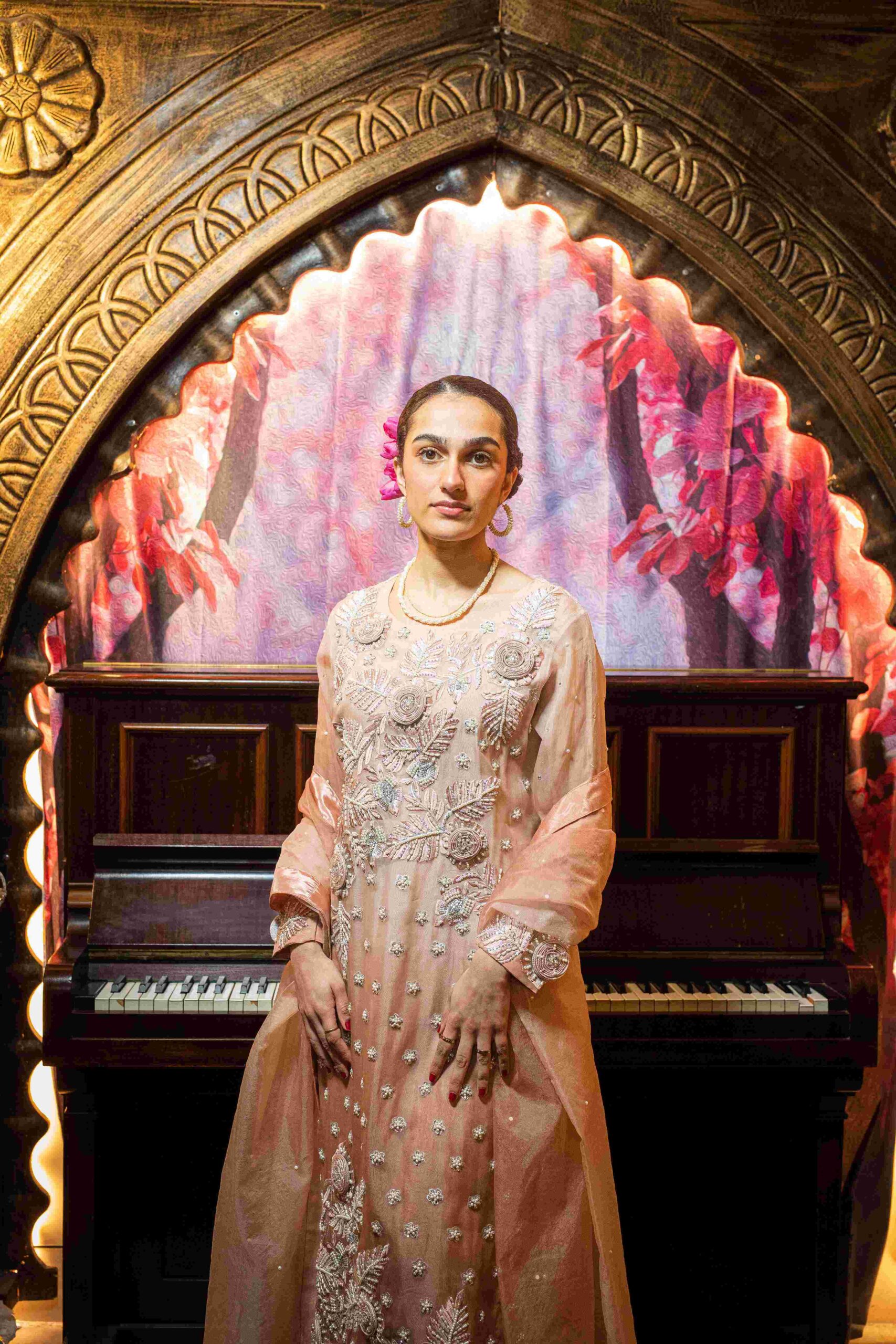 The Avellana is the perfect fusion of timeless and modern. It exceeds radiant charm with its interplay of sequins, intricates threadwork, and glistening crystals. The set features a finely with tailored organza shirt and beautify with swarovski spray on dupatta paired with azar Pants having hanging crystals border.