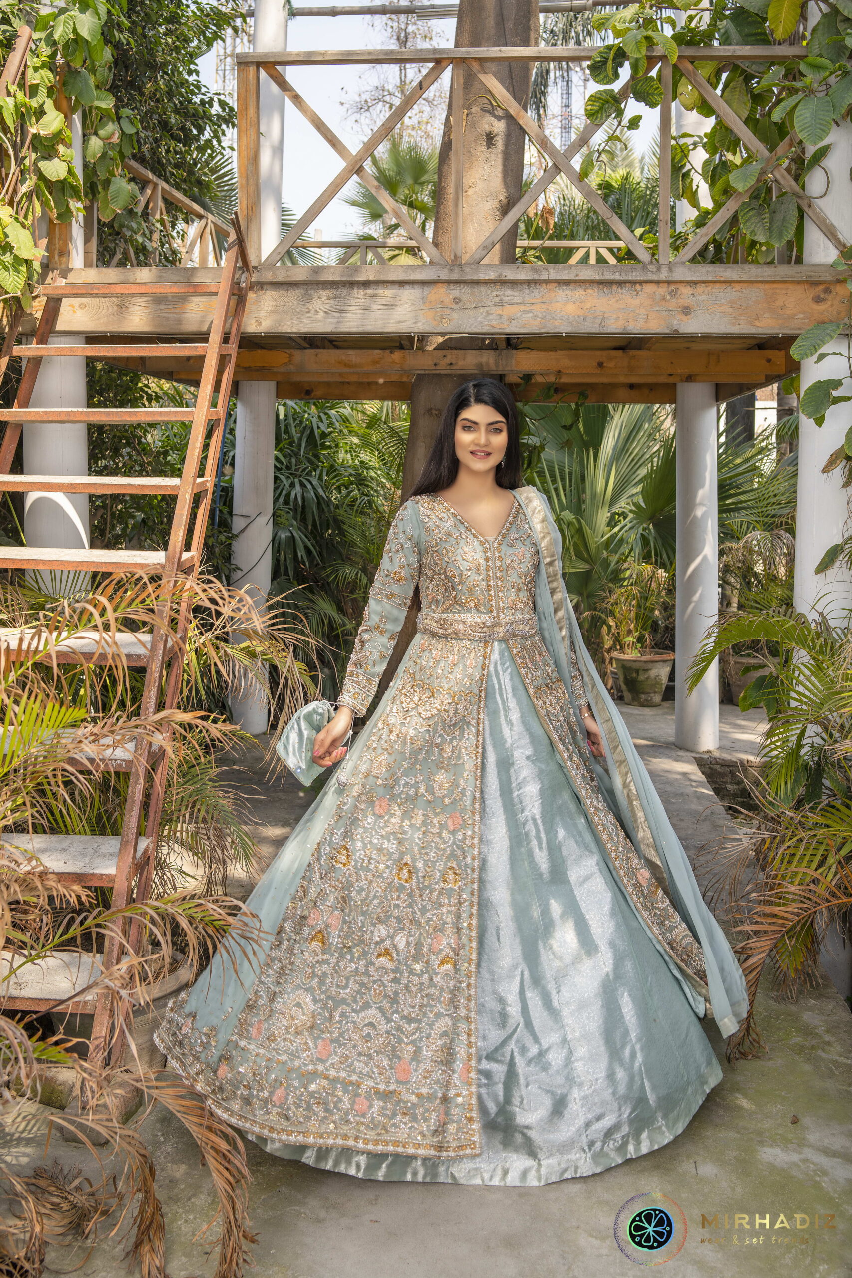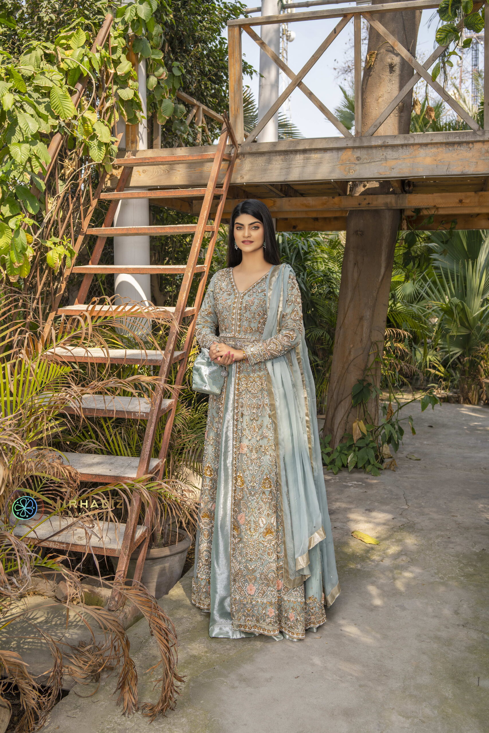 Experience unparalleled luxury with our exquisite ensemble, meticulously adorned with opulent zardozi detailing that exudes an air of royal grandeur. Enhanced with intricate adda work, kora dabka stones, pearls, 3D flowers, and diverse artistic elements, this ensemble stands as a symbol of elegance for formal occasions. The meticulously crafted handwork belt adds a touch of lavishness, ensuring a truly remarkable appearance.