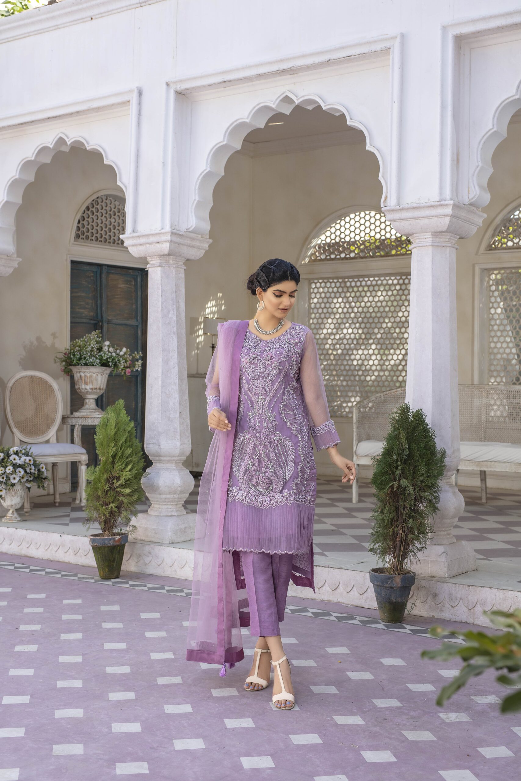The Lilas is the perfect fusion of timeless and modern. I exceeds radiant charm with its interplay of sequins, intricates threadwork, and glistening crystals. The set features a finely with tailored organza shirt and beautify with swarovski spray on dupatta paired with azar Pants having hanging crystals border.